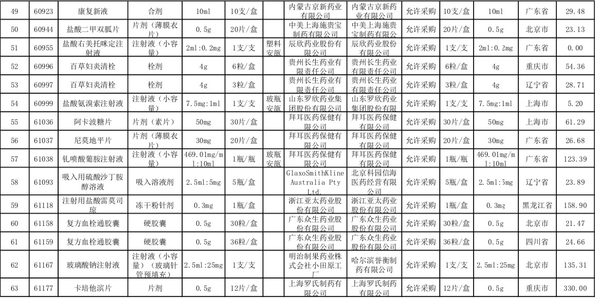 63個藥品披露全國最低價 7個藥或被暫停采購摘要: