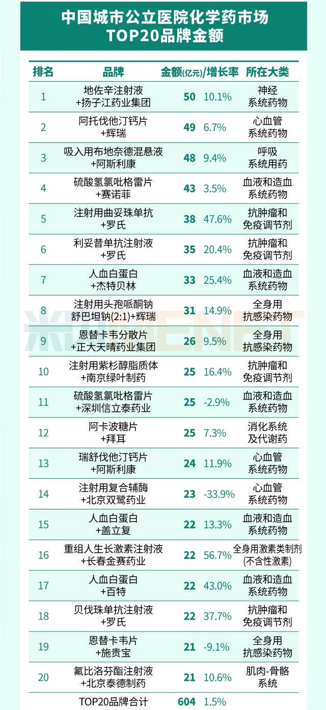 城市公立醫(yī)院十大品牌年銷(xiāo)超30億 揚(yáng)子江領(lǐng)軍化藥