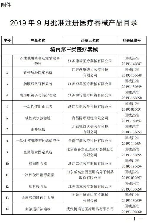 醫(yī)藥網(wǎng)11月4日訊 10月31日,國家藥監(jiān)局發(fā)布《國家藥監(jiān)局關于批準注冊184個醫(yī)療器械產(chǎn)品公告(2019年第85號)》。