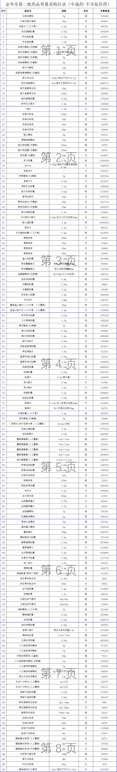 具體藥品目錄如下: