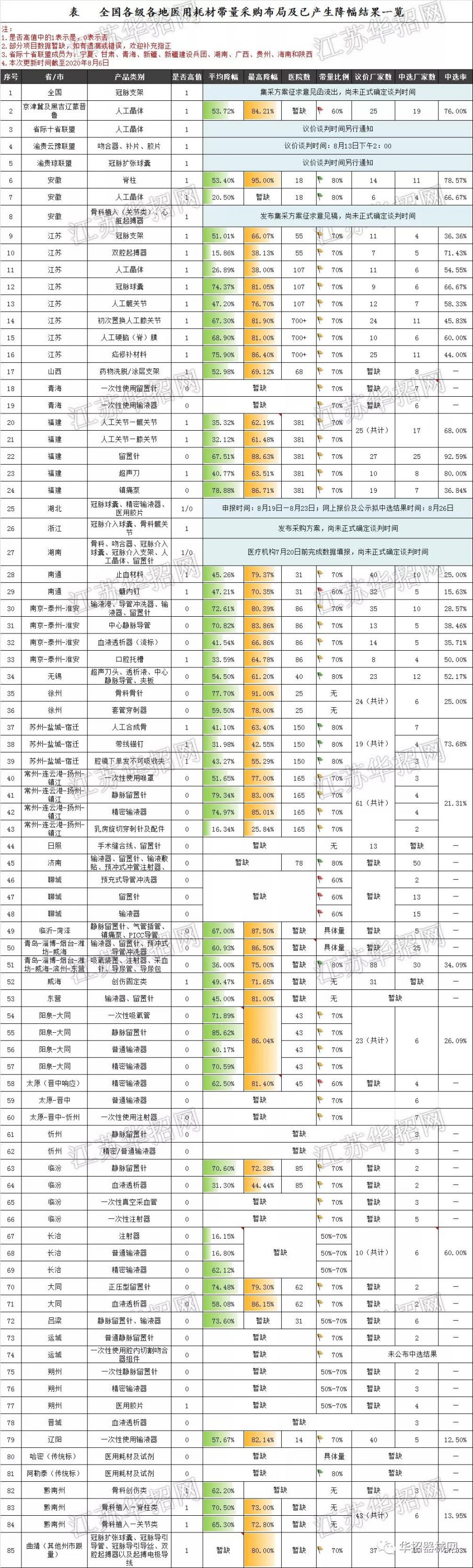 下附:全國各級各地醫(yī)用耗材帶量采購布局及已產(chǎn)生降幅結(jié)果一覽