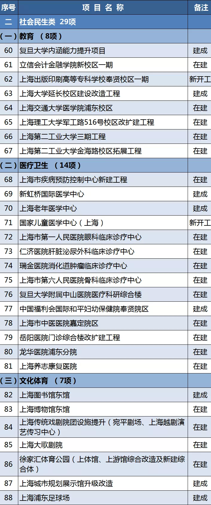 關(guān)于醫(yī)療衛(wèi)生項(xiàng)目共有14項(xiàng),其中計(jì)劃建成新虹橋國(guó)際醫(yī)學(xué)中心、上海老年醫(yī)學(xué)中心和國(guó)婦幼奉賢院區(qū)3項(xiàng),計(jì)劃新開(kāi)工國(guó)家兒童醫(yī)學(xué)中心(上海)1項(xiàng)。