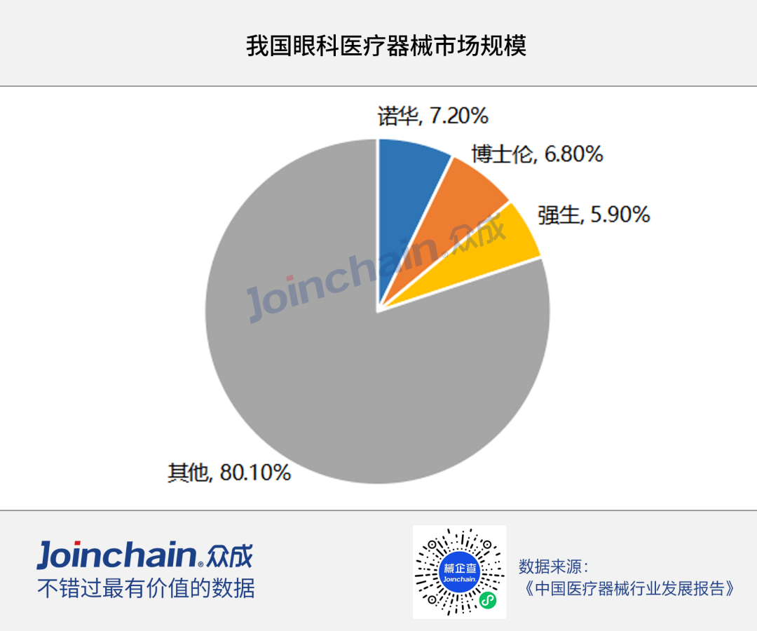 ![]() 目前,國內(nèi)眼科醫(yī)療器械市場在人工晶狀體的高端領(lǐng)域由國際巨頭占據(jù),國產(chǎn)企業(yè)目前正處于中高端領(lǐng)域進口替代的起步階段。諾華、博士倫和強生占據(jù)國內(nèi)眼科醫(yī)療器械市場前三,合計占比約為20%。